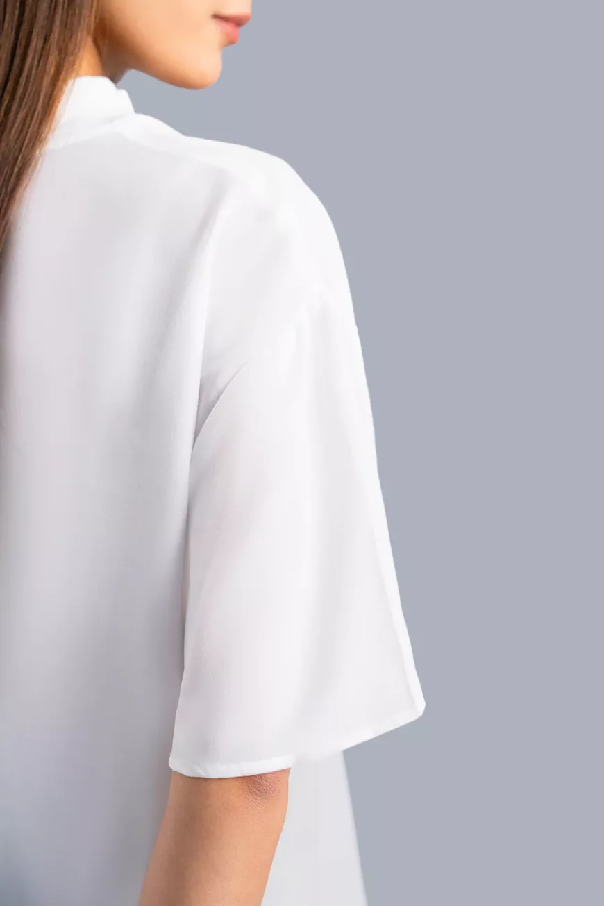 This white ban round neck top is the perfect staple piece for any wardrobe, it offers both comfort and style. The elegant silhouette adds a touch of sophistication to any outfit. Upgrade your wardrobe with this versatile and timeless solid top.