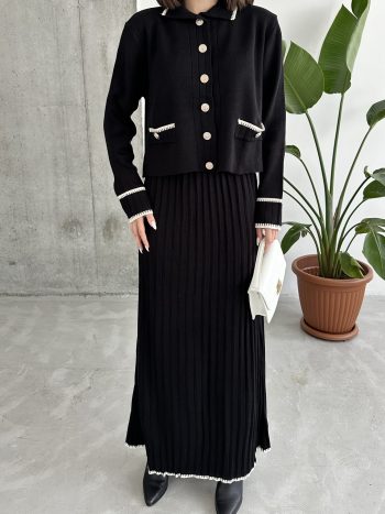 Ribbed Collar Skirt Suit