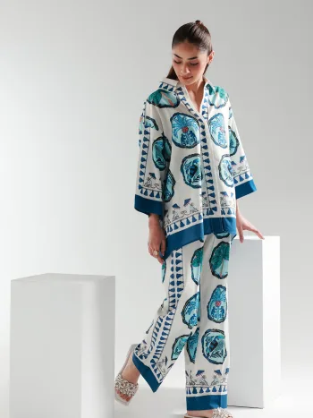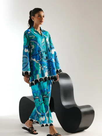 Blue-Green Artistic Print Co-ord Set