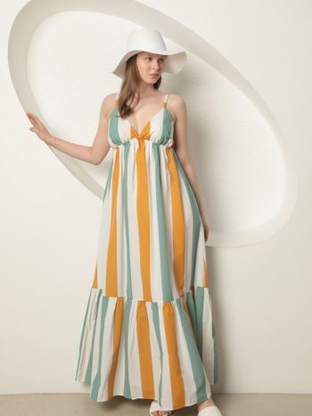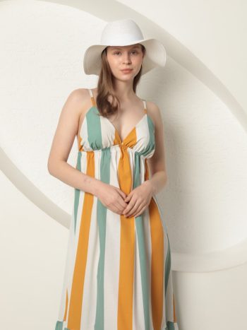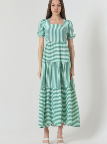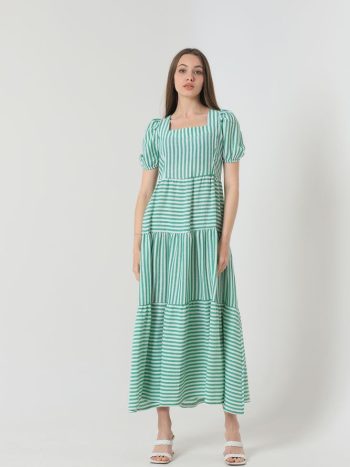 Ριγε κοντομανικο μακρυ φορεμα – πρασινο λευκο