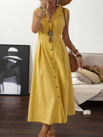 Maxi σεμιζιε αμανικο φορεμα – κιτρινο