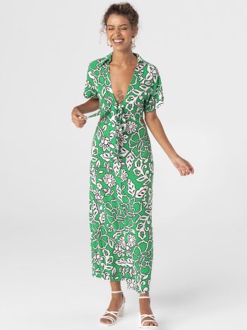 Φλοραλ φορεμα με cut out στη μεση- πρασινο