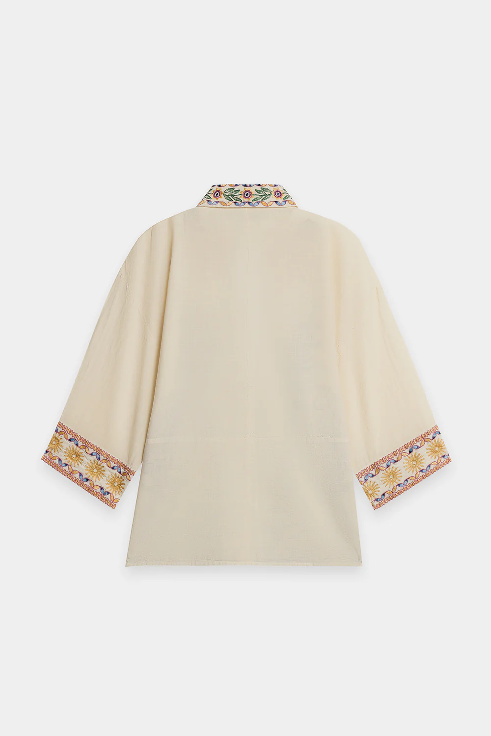 Design: Intricate multi-colored floral embroidery
